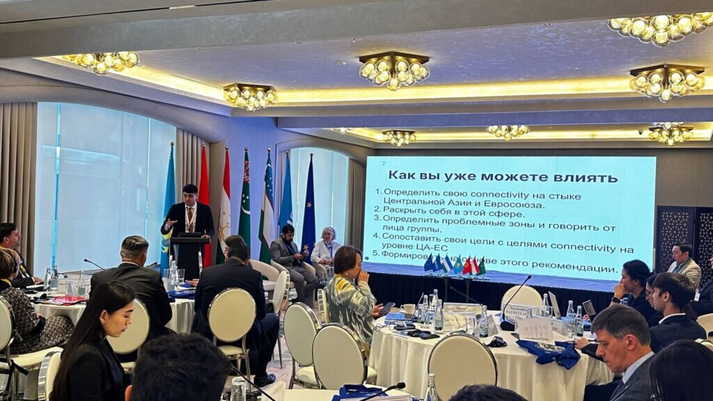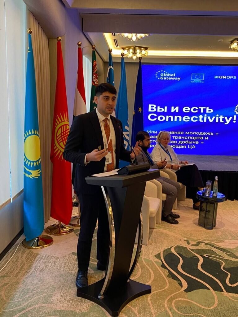His presentation, titled “You (We) Are Connectivity! Or Active Youth + Transport Development and Sustainable Extraction = A Prosperous Central Asia,” explored how young people in Central Asia can actively shape the future of connectivity between the European Union and Central Asia.
